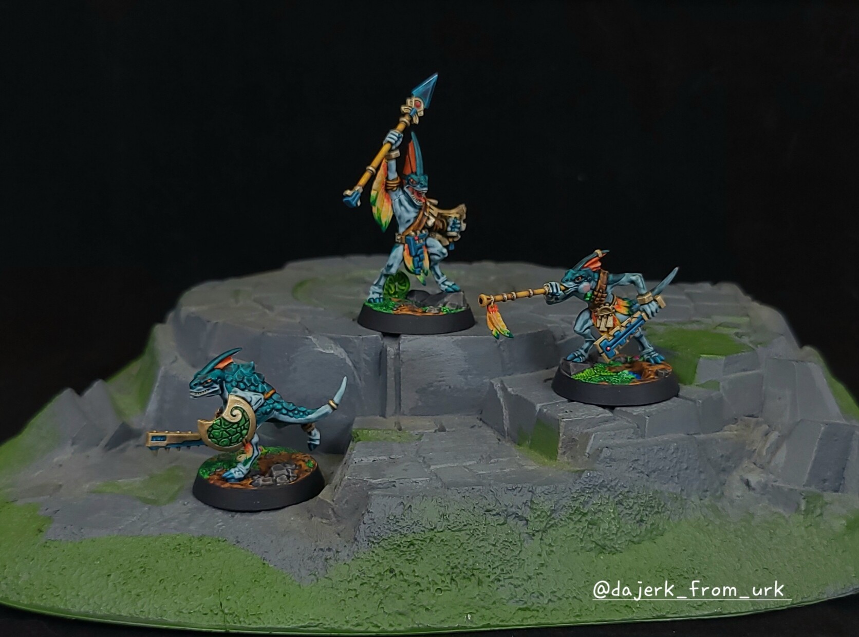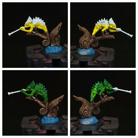 Playing with colors for my #Seraphon #Warcry team bases. These bases are way more intense than I originally thought! 🤩