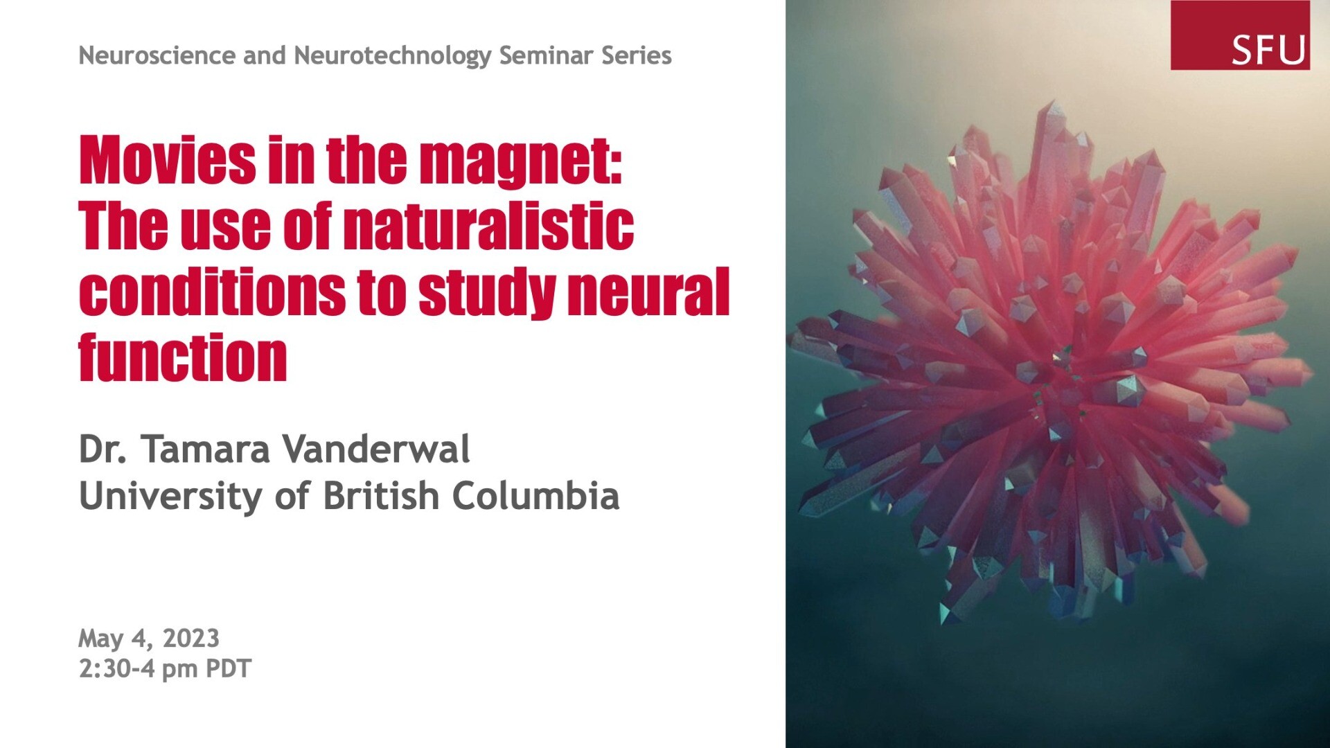 Join the #SFU Institute for Neuroscience and Neurotechnology on May 4 for a seminar from Dr. Tamara Vanderwal who will be presenting "Movies in the magnet: the use of naturalistic conditions to study neural function."