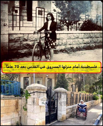 The same woman in front of her stolen house in occupied Jerusalem after 70 years.