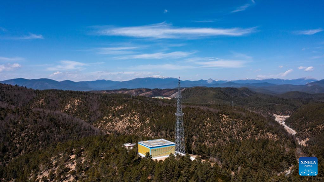 This aerial photo shows a view of #Shangri-La National Atmospheric Background Station in the Deqen Tibetan Autonomous Prefecture of southwest China's Yunnan Province, on March 9, 2023. Shangri-La National Atmospheric Background Station, located in the Deqen #Tibetan Autonomous Prefecture of southwest #China's #Yunnan Province with an altitude of over 3,500 meters, is one of the seven atmospheric background stations in China