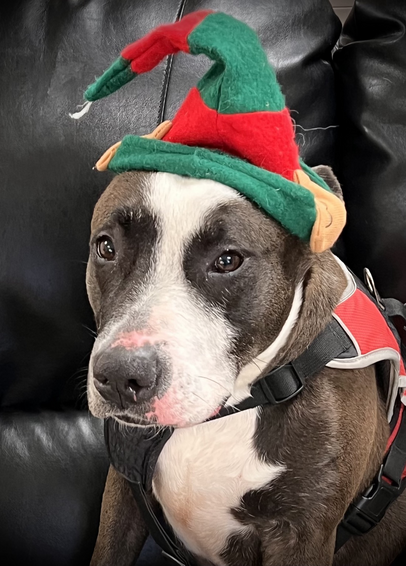 Dakota, one of the doggos at our county shelter where I volunteer, wishes everyone a Happy Holidays. Also, she wants you to know she loves her elf gear. No, really, she loves it. ❤️💚❤️💚❤️ #dogs #shelterdogs
