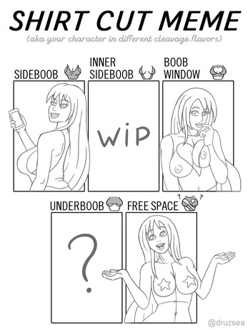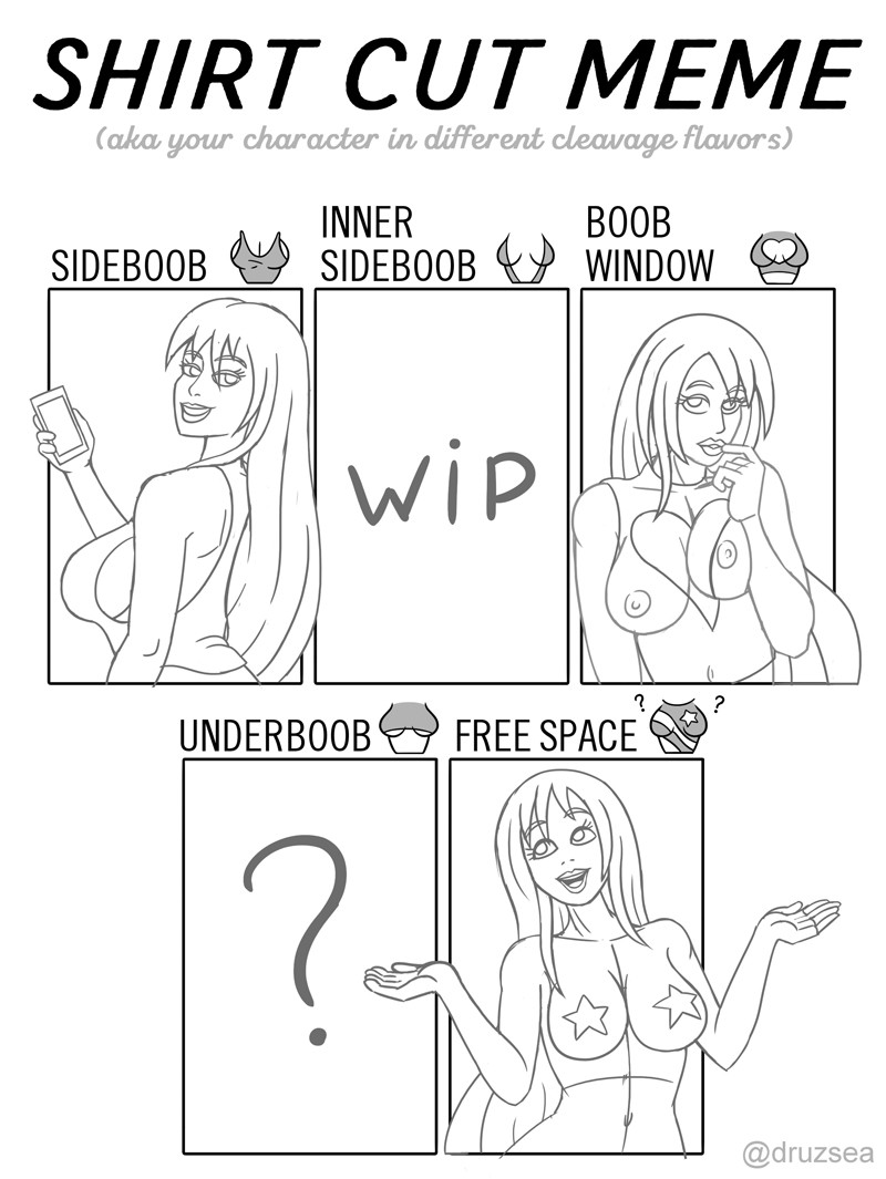 I'm sketching my participation for the shirt cut meme challenge. I have an idea for the 2nd pic, but I have not decided yet what to do for the 4th one. Do you have any suggestions ?