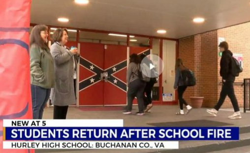 #HurleyHighSchool paints its doors with the #GOP confederate flag to remind students what political party is responsible for killing them.