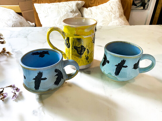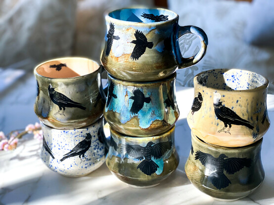 Shop update! Just posted six new blackbird mugs! #crow #blackbird #birds #maker #ShopUpdate #handmade #MastoArt #artist #SupportArtists #artForSale #share #ArtMatters
