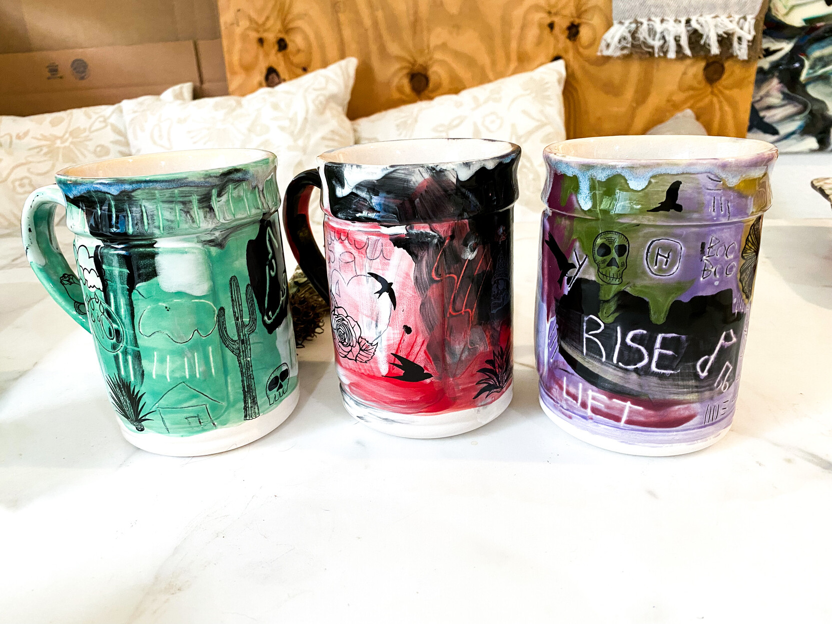 I just posted a new batch of my illustrated mugs in the etsy shop I profit share with my mom: https://www.etsy.com/shop/RetroRamics