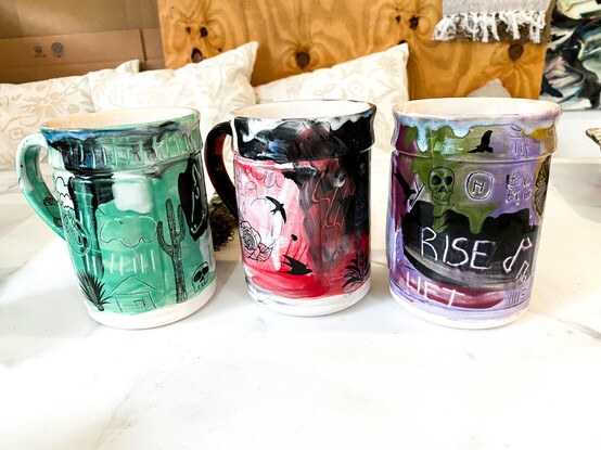 New mugs just posted in the shop I share with my mother: https://www.etsy.com/shop/RetroRamics #handmade #shopUpdate #maker #creative #MastoArtist #WomanOwnedSmallBiz #art