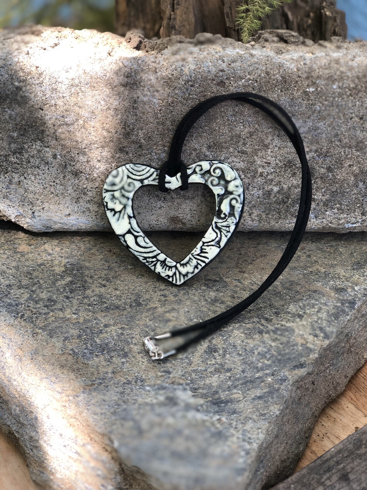 New open heart necklace. Just 3 on etsy: https://www.etsy.com/listing/1463060281/open-heart-ceramic-statement-necklace-in #ceramic #handmade #artist #maker #shopUpdate