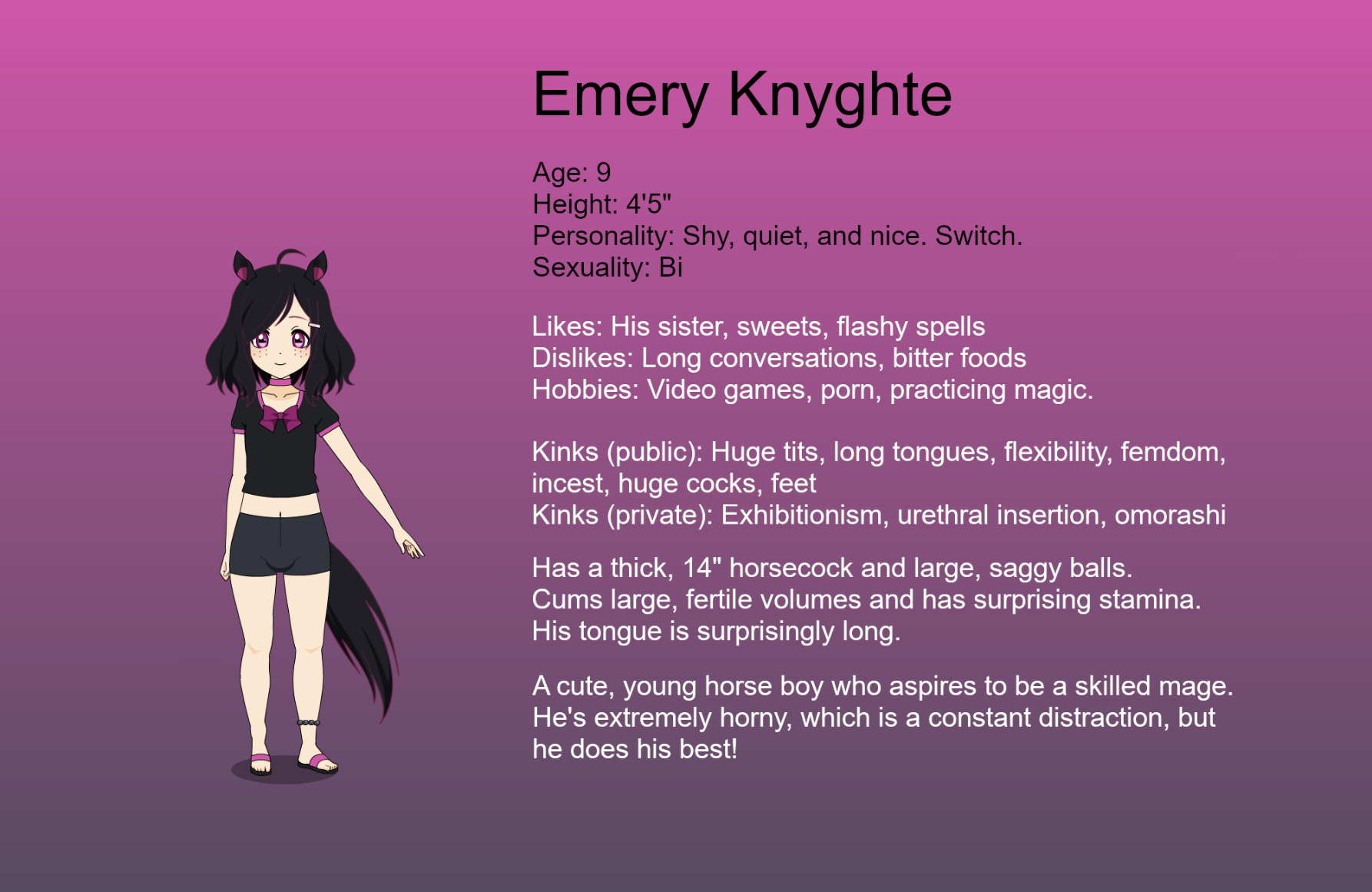 He's 10, 5' tall, has a dick that is 13 inches fully soft and thick as a coke can with softball-sized balls, and he's 24 inches fully hard and double the thickness, as well as balls doubling in size to match.
