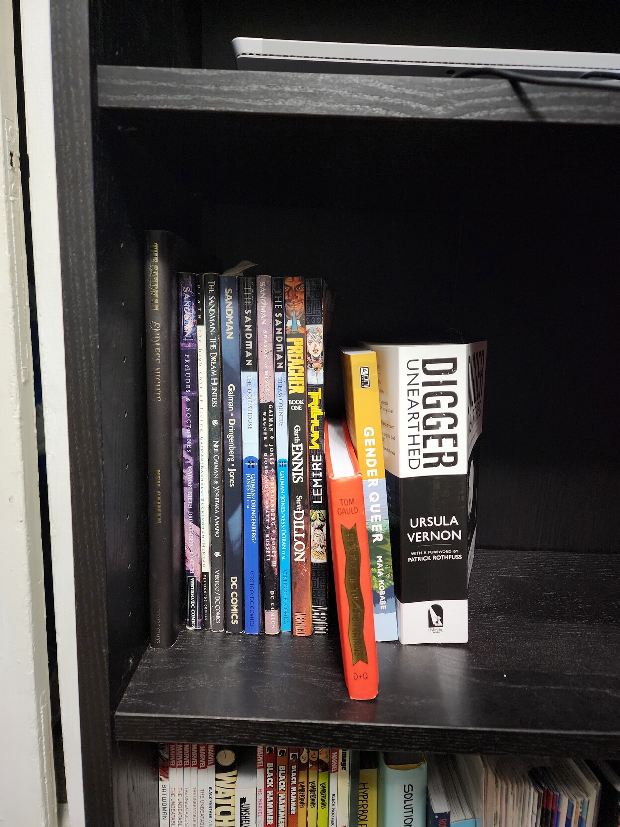 @bookstodon #ShowMeYourBookcase #Bookstodon And finally, the one in the dining room, which is slowly filling with comics.