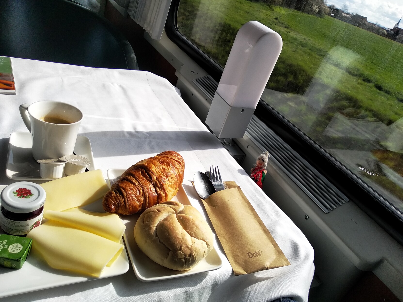 At-seat catering on #IC 2063 from #Stuttgart to #Leiozig so no @diningcar but absolutely MASSIVE windows upstairs. #SiegeAvecVue