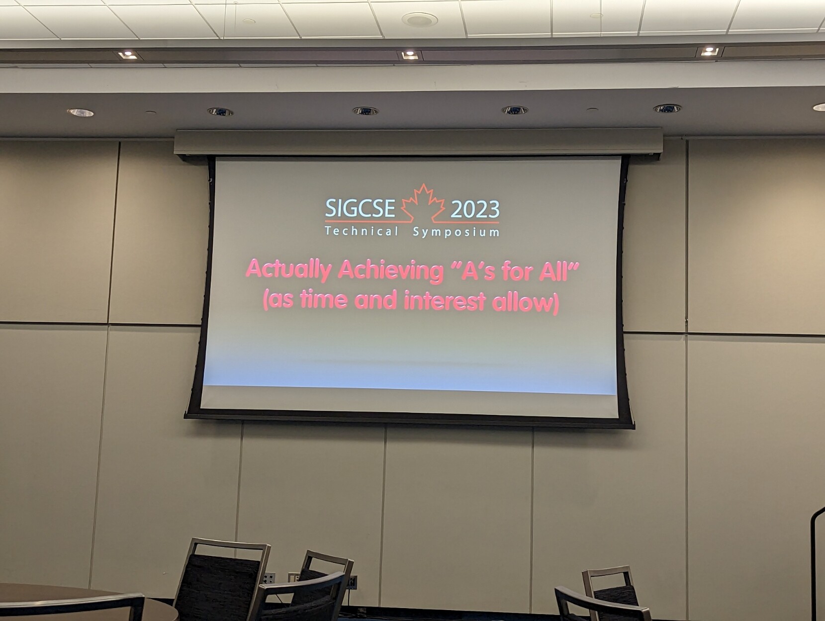 Workshop 104: Actually Achieving A's for All. Lots of good discussion and notes taken. #sigcse2023