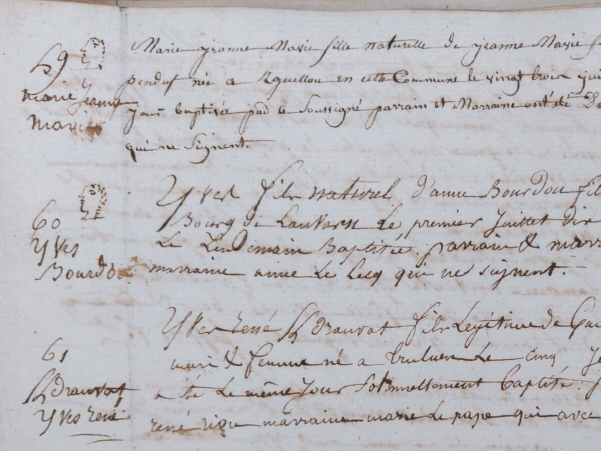 [Coup de ❤️] pour le recteur de Plonéour ! En marge de l’acte de baptême il dessinait une figure pour indiquer un enfant naturel. @ArchivesDiocese @finistere_29 @FranceArchives #archives #finistere #genealogie #dessin #signe👇AD29 : 135 V DEPOT 5
