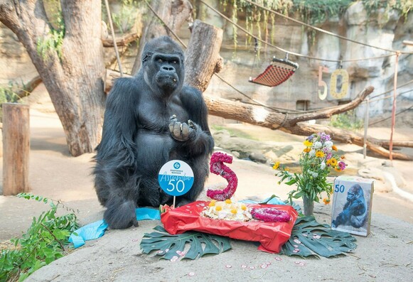 #Silberrücken–Geburtstag: Torte zum 50. für #Gorilla #Assumbo