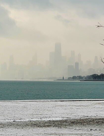 Heute morgen um kurz nach 6 Uhr war die Silhouette des Wäldchens im Morgendunst