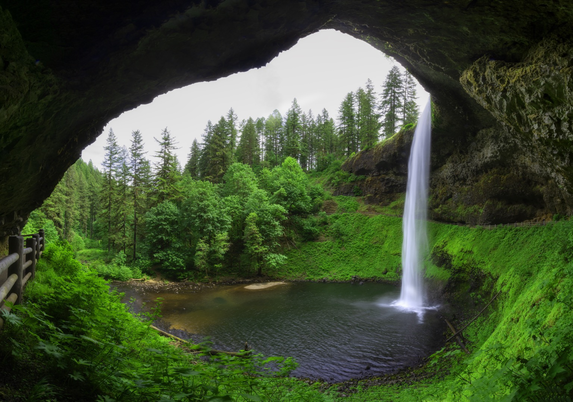 Whenever we see photos of waterfalls it quite standard to see them from the vantage point of the water falling off a cliff or rocks, but in #Oregon there’s a place, #SilverFalls, where you can see a waterfall from whole different perspective.