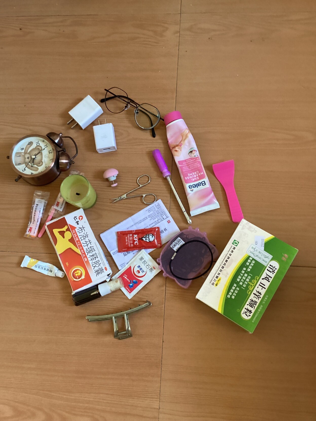 1. 丢掉的东西有过期的药(寻麻疹时期小药店给的中成药,当时没反应过来,以后应该先说不要中药和中成药,一包没吃准备扔掉)、弯掉的剪刀、声音太大的闹钟、超过半年没用到的耳塞和服美役时候的产品等等。