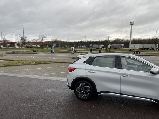 Wanted to test the MG 5 electric for my Denmark trip. Last Thursday #sixt called me that I can pick up the car from a different place and I get another car. The #byd was now just English, had no introduction, no manual … the distance estimation is total crap. The last 40 kilometers today ended after circa 10… the last percentages dropped pretty fast. And the neutral gear can not be set … car just goes into P mode. So you are not able to tow the car. We could see the charger.