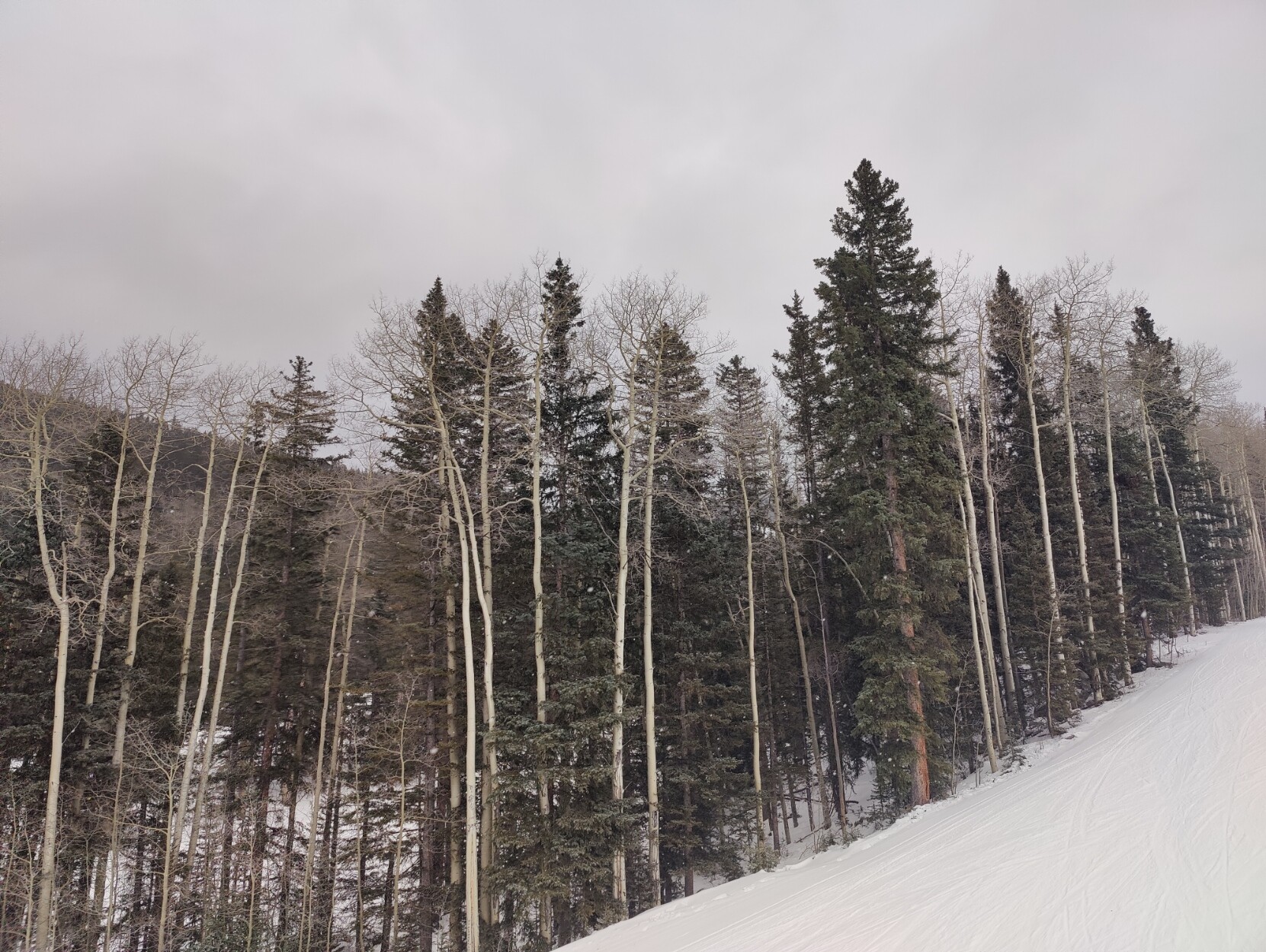 A full day at Ski Santa Fe yesterday. Fresh snow. Bluebird conditions. Weekday traffic levels. Nice!