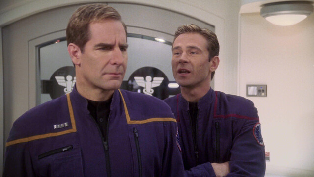 Tucker giving some helpful advice to Capt Archer right before he talks to a captured Klingon: "I read that if they [the Klingons] sense weakness in the Captain, they'll try to kill him and take command."✊️