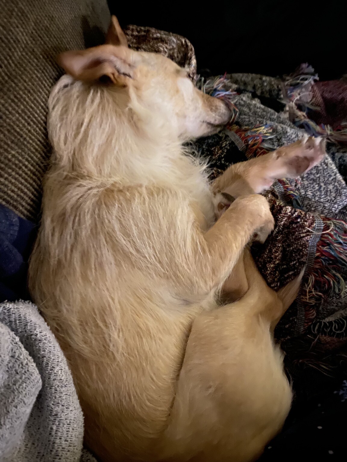 Please enjoy this picture of a tiny little bean. #dogsofmastodon #chihuahua mix #sleepingdogs