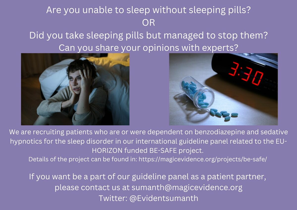We are recruiting patient partners for our guidelines panel. You can help us by re-tweeting this post or sharing this with such patients @DeprescribeAU@twitter.com @DeprescribeUS@twitter.com @InsomniaSup@twitter.com @EDeprescribeN@twitter.com #Sleeplessnight #insomnia
