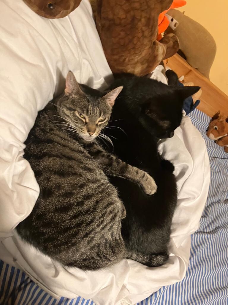 The kids are alright. #catsofmastodon #blackcats #tabbycats #sleepycats
