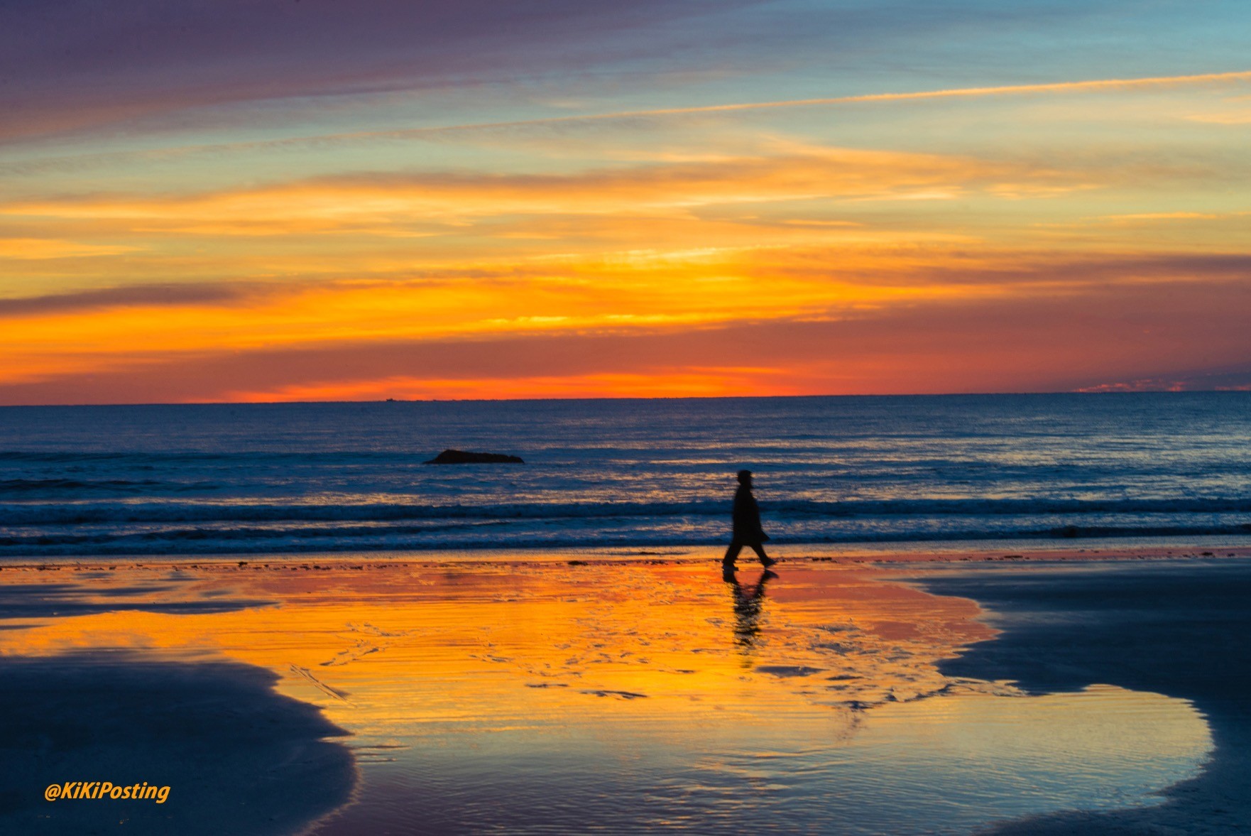 During sunrises I usually set my camera on a slow shutter speed, so I normally don't like people to enter my photos, however, this man entered the photo & although he ended up a little blurred, the photo still ended up cool...