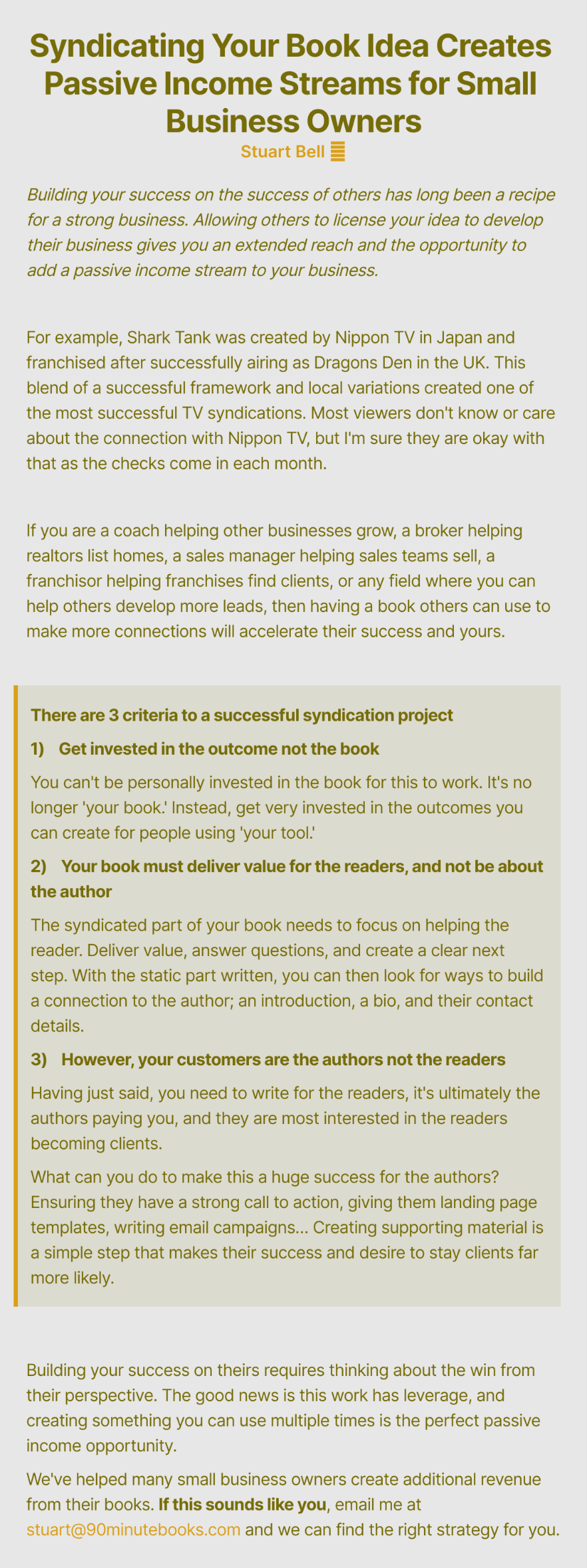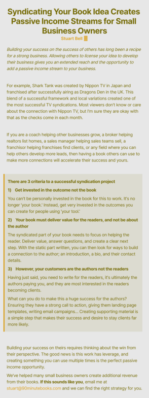 Syndicating Your Book Idea Creates Passive Income Streams for Small Business Owners ๐