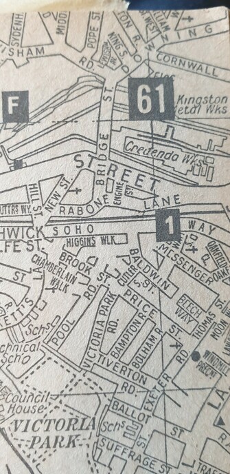 From the Birmingham and West Midlands A to Z ... rather an old copy. Engine St, just to the left of the 1, where gtgrandad was born in the 1850s.