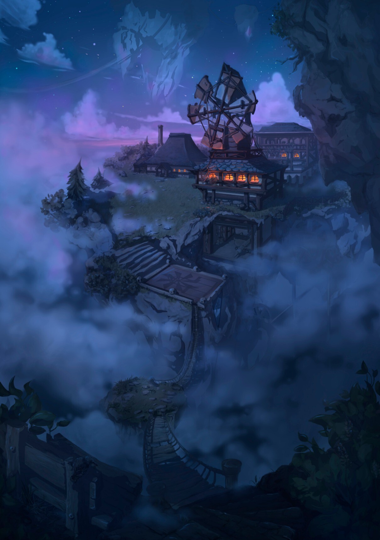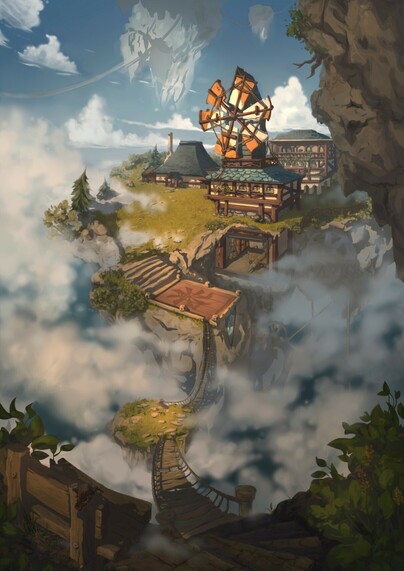Windmill in the village of the Flying Islands. Daytime option.