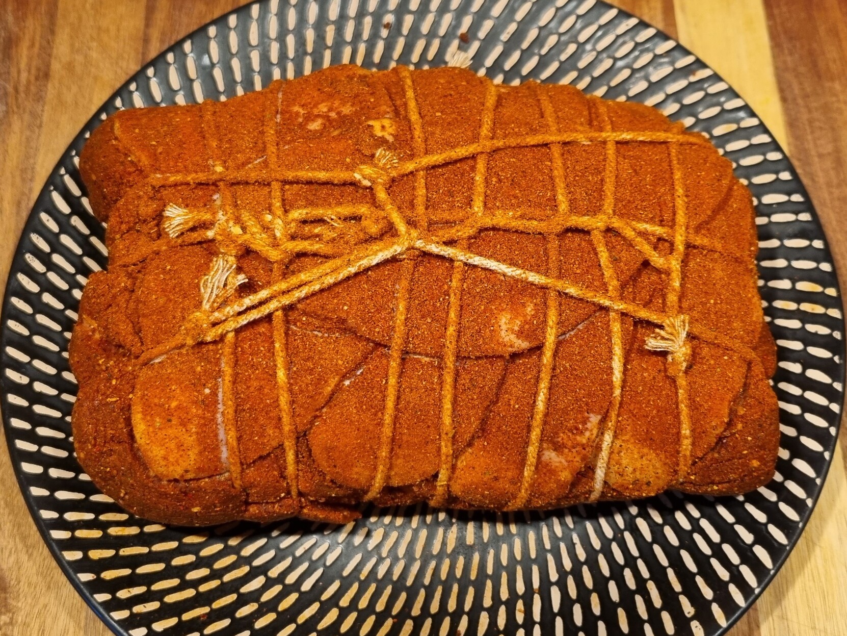 I generously coated the chook with a herb & spice mix I made a month or so ago (ingredients in next post) and put it back in the fridge.
