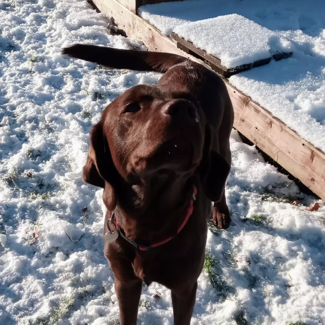#dogsofmastodon #snowdogs #chocolatelabrador #rescuedogs #adoptdontshop