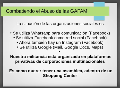 Una slide que interpela, de la charla sobre el combate a las GAFAM https://tube.undernet.uy/w/q6gKWhofAVdgmGp1PzGopY #gafam #soberanía #digital