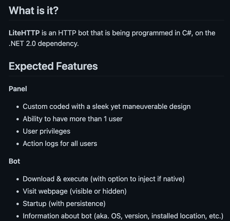 If you Google the string, the first result that comes up is a github repo for a C# HTTP bot someone wrote named LiteHTTP. The code makes it look like the bot uses the string I shared as its user agent: https://github.com/zettabithf/LiteHTTP/blob/master/Bot/LiteHTTP/Classes/Communication.cs. If you think about the scenario I described, I said that this was a LINUX host, but this bot is written for a WINDOWS system. At that point some folks said case closed, because the Windows bot wonāt run on Linux. But⦠thereās more to the story.