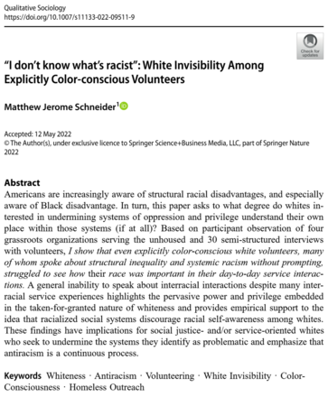 Check out my new article, "I don't know what's racist," available at Qualitative Sociology. Full text available here: rdcu.be/cTaOP