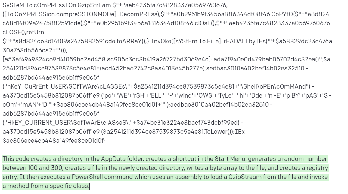 Whoa. You can use OpenAI to deobfuscate #malware. Here's a chunk of old #Solarmarker, which it correctly summarized. #Infosec