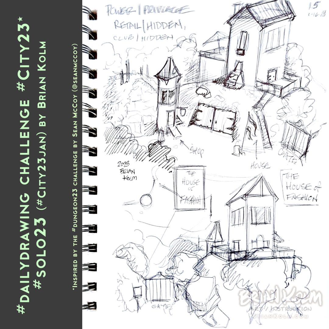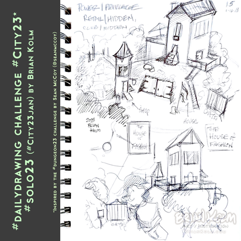 This week the #city23 worldbuilding #drawing prompt: Jan 15-21 Power and Privilege, Retail+Hidden, Club+Hidden