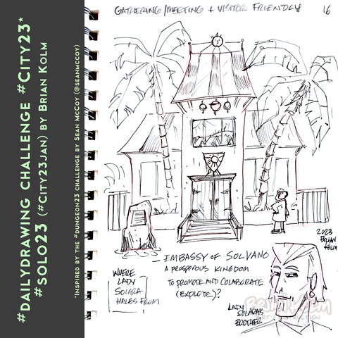 This week the #city23 worldbuilding #drawing prompt: Jan 15-21 Power and Privilege, Gathering+Visitor Friendly III
