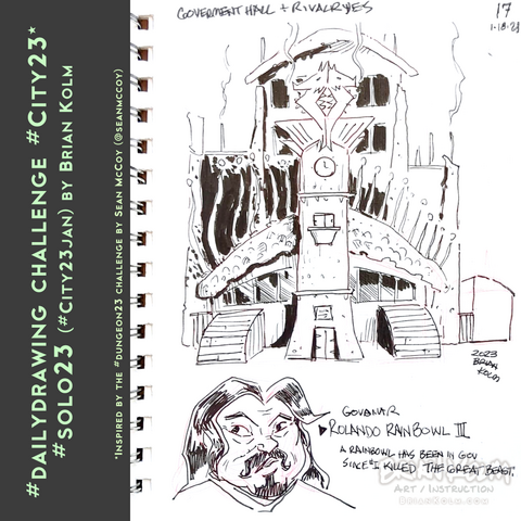 This week the #city23 worldbuilding #drawing prompt: Jan 22-28 Everyday - Landmark + importance