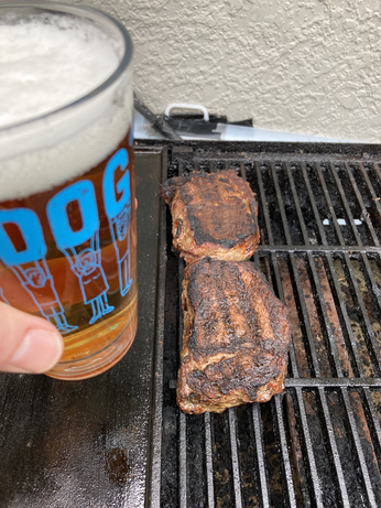 Searing a couple of scotch fillets to go with the roast veg & halloumi lasagne #somethingforeveryone #notquitevegan