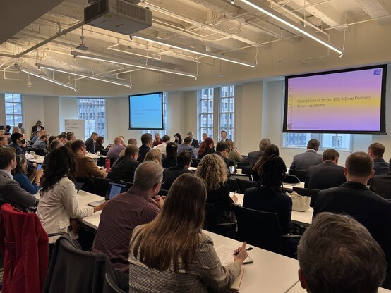 I do not understand why a speaker on this #SOTN2023 Section 230 panel is implying that Section 230 should somehow insulate platforms from being forced to respond to police demands for user data. It doesn't. It never did. It means we need MORE protection for platforms, not less.