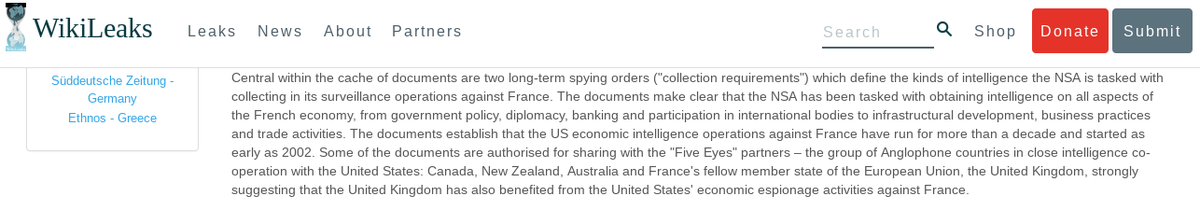 Espionnage Élysée: WikiLeaks previously revealed US economic espionage against France and wiretapping of French Presidents and Ministers, many documents authorised for sharing with the "Five Eyes" partners #NSA #AUKUS #SousMarins https://t.co/9Ar8dvhaAi https://t.co/e6DV3Y1Rj9