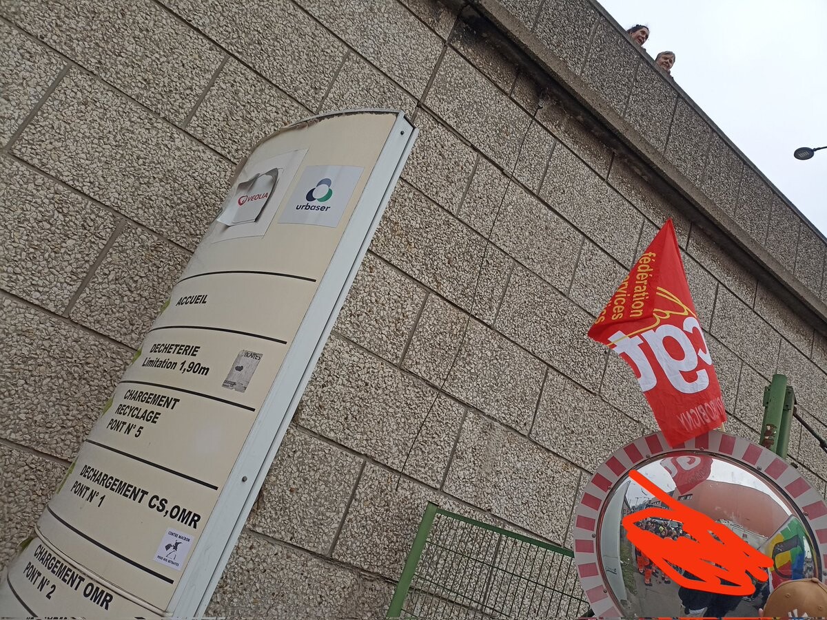 #SoutienAuxEboueurs blocage en cours à la déchetterie de Romainville ! Nous sommes près de 200 à scander "La force des travailleurs c'est la grève"