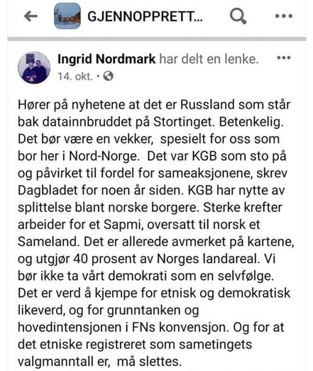 Anklager mot samer for å være mulig femtekolonne er ikke noe nytt. I kald krig-tida brukt mot både samer i Sovjet ("sikkert vestlige agenter") og samer i Vesten ("sikkert sovjetiske agenter"). Dra grenser tvers gjennom landet til folk, og vær deretter mistenksom fordi de er grenseoverskridende...