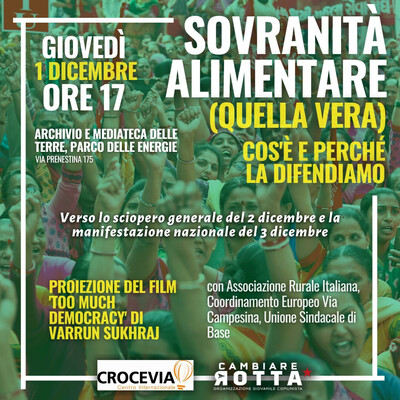 Domani 1 dicembre a Roma, @ l'Archivio e Mediateca delle Terre di @CCrocevia@twitter.com, nella Casa del Parco delle Energie (v Prenestina 175, h 17), con Cambiare Rotta ricostruiamo la nascita del concetto di #sovranitàalimentare, il significato e le sfide che incontra oggi