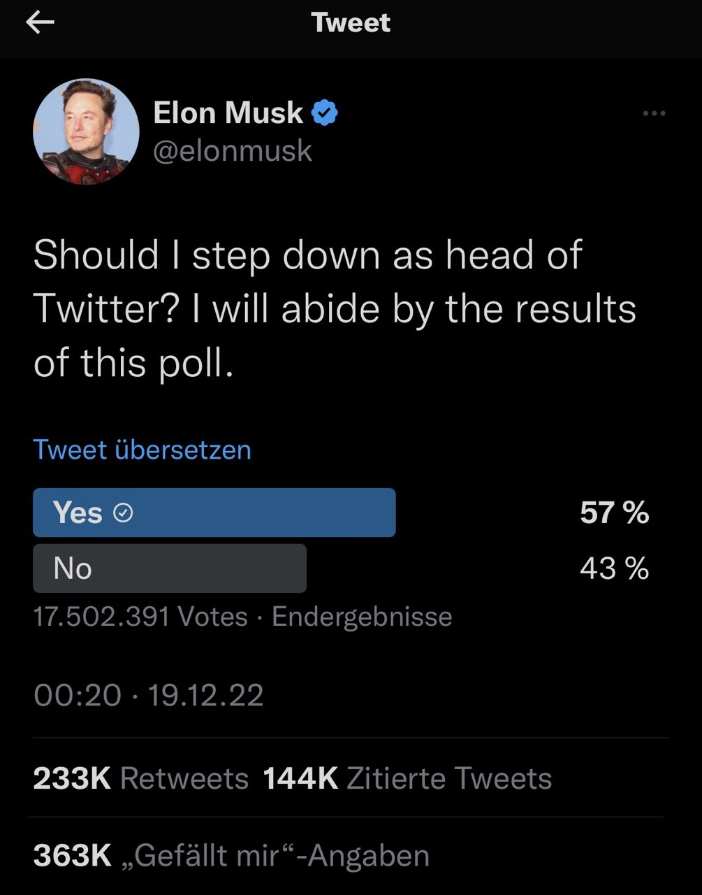 Mal schauen, was der #Soziopath #Musk jetzt macht.