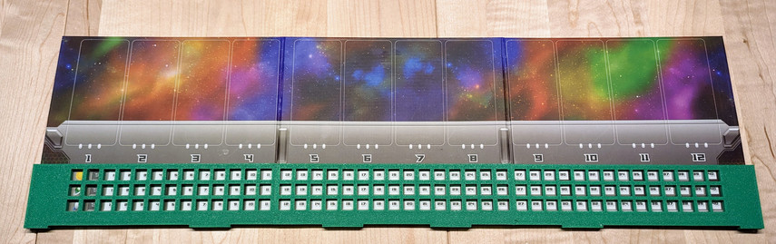 Pretty proud of myself. Tweaked a Space Base player board overlay I found on Thingiverse and added lips on the edges to keep it in place on the boards.