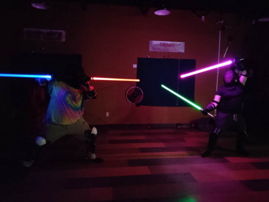 Just a neat (imo) shot from one of my bouts during tonight's sci-fi combat club.
