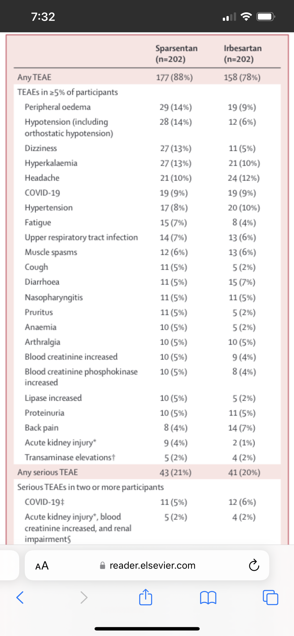 The clinical kidney outcomes were less with Sparsentan (7 vs 13) but this is where I would like to see longer term effects of that sodium retention with Sparsentan. So let’s wait and see for final results I say