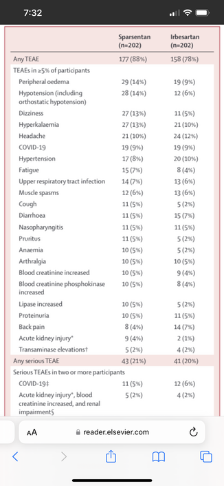 Adverse effects of interest - as expected more sodium retention and even more AKI (!) with #Sparsentan
